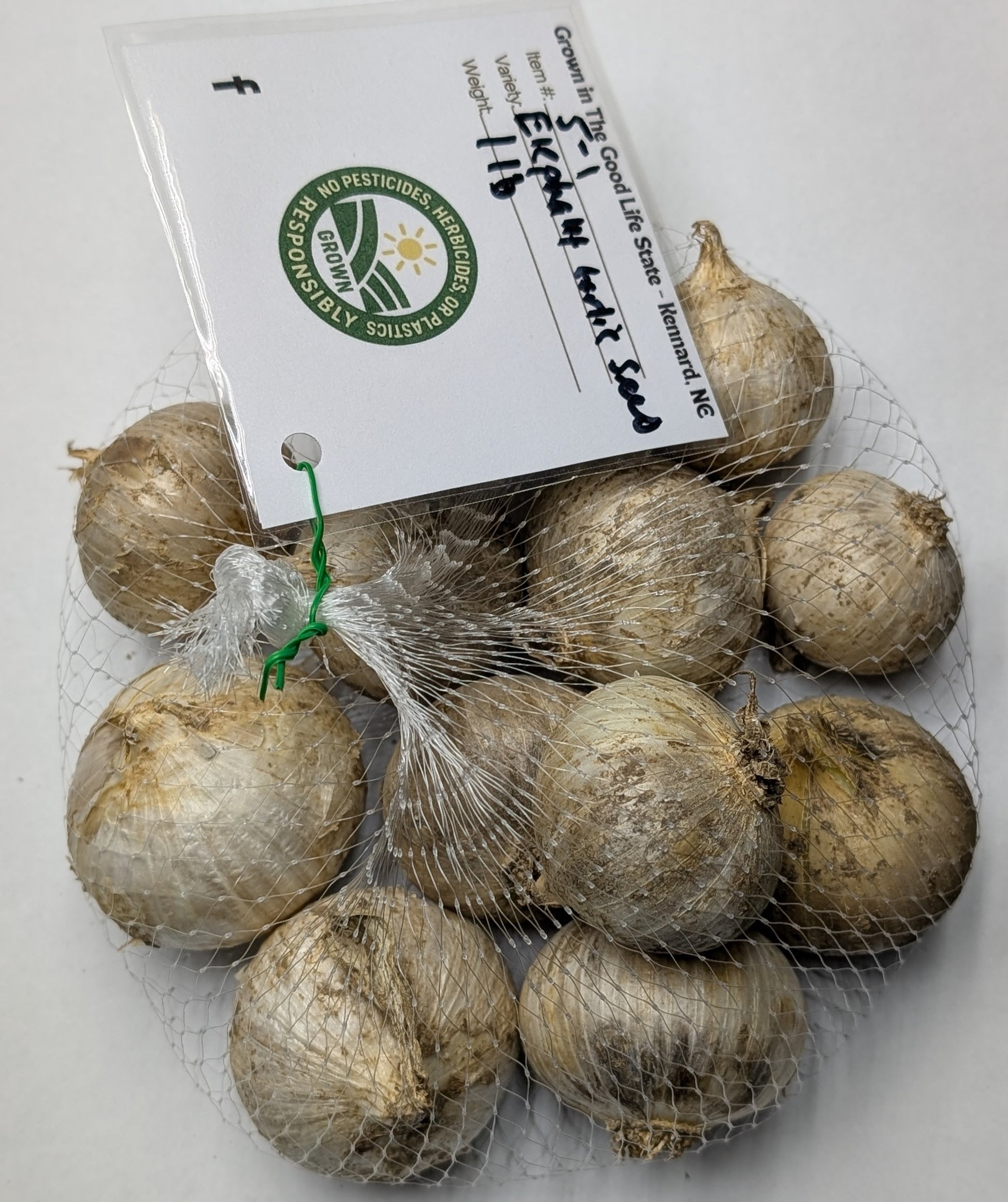 So the thing is, elephant garlic is weird, it's more a leek than a garlic but was cultivated over the centuries to be like a garlic. BUT in it's own way it maintains a 'biennial' growth habit like onions and other alliums. So if you plant individual cloves, you get a 'round' like this which does not produce a yummy scape that season, but when planting rounds like this being sold here you get a delicious scape AND a fully formed bulb!